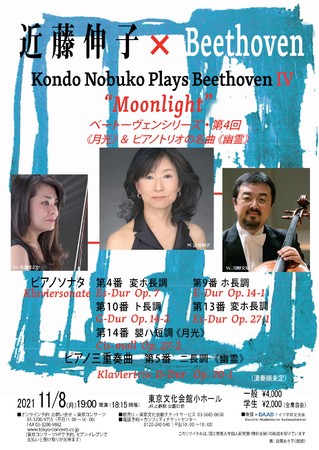 東京コンサーツ『近藤伸子ベートーヴェンシリーズ IV Kondo Nobuko Plays Beethoven IV』が2021年11月8日(月)に東京文化会館小ホール(東京都台東区)にて上演されます。チケットはカンフェティ(運営:ロングランプランニング株式会社、東京都新宿区、代表取締役:榑松 ⼤剛)にて8月5日(木)より発売開始予定です。