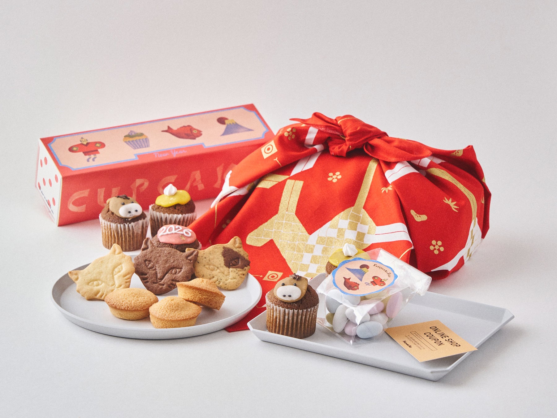 2026年の干支スイーツ『ベイクド新春 午(うま)カップケーキ』をはじめ、“神様のいたずら”のような模様が魅力の『ミラクルキャットクッキー』、発酵バターを贅沢に使った『カップケーキフィナンシェ』、幸福の象徴として親しまれるアーモンドチョコレート『ドラジェ』を詰め合わせた迎春アソート。さらに、公式オンラインショップで使える 『配送料無料クーポン』 も付いたお得なセットです。