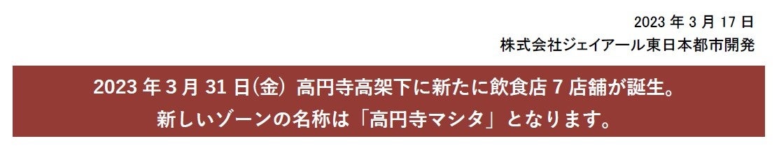2023年3月31日(金) 高円寺高架下に新たに飲食店7店舗が誕生。