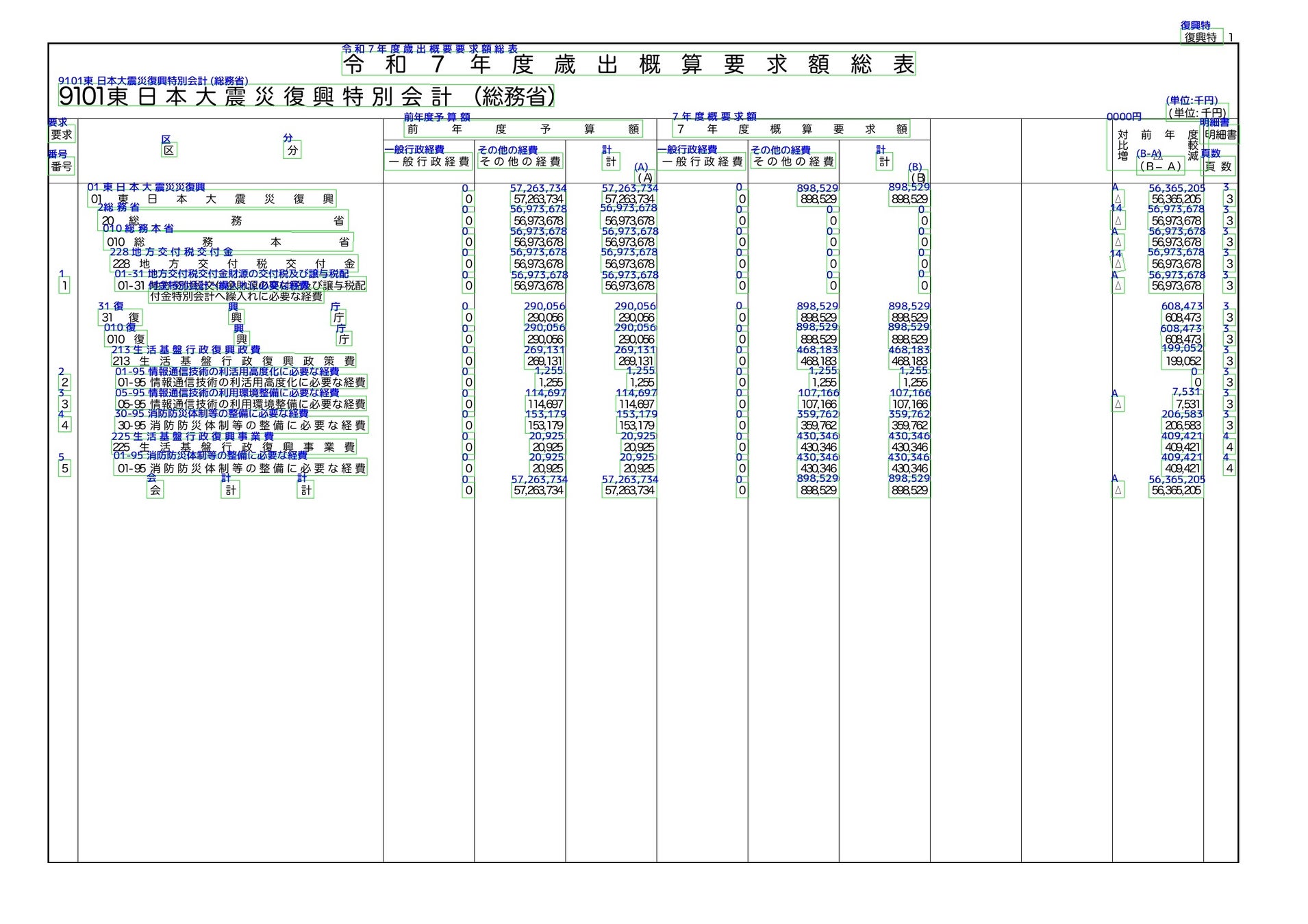 出典:「令和 7 年度歳出予算概算要求書(東日本大震災復興特別会計)」(総務省) を加工して作成