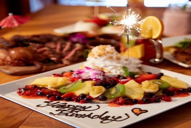 お誕生日や記念日のご予約でパンケーキをご注文いただくと、ご要望に応じてオリジナルデコレーションを承ります。また、皆さまでの記念写真を特製フォトフレームに入れてプレゼントいたします。そのほか、ご相談に応じてお客様の大切な時間を彩るサプライズ演出など、心をこめてお手伝いさせていただきます。