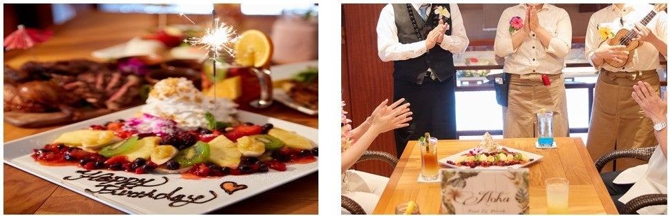 | ハワイのリゾートホテルをイメージした、上質感のある空間づくり 店内に入るとピニャコラーダの香りでお出迎えします。ハワイの香り・水の音・陽射し・樹々のざわめきが心地よい空間で、忙しい日常から離れ、ハワイに行ったような、くつろげる癒しの時間をお過ごしいただけます。 ハワイアンフードや、リゾート気分を味わえるトロピカルドリンクなどをご用意 フリフリチキンやガーリックシュリンプ、ロコモコといったハワイのロコフードから、豪快なステーキやハンバーガー、もちもちのオリジナルパンケーキ、色鮮やかなカクテルなど、味はもちろん、見た目にも楽しいメニューを取り揃えております。こだわりのコナ100%コーヒーはハンドドリップでご提供いたします。 特別な日のお祝いや、お客様それぞれの大切なシーンで寛ぎ時間をご提供 モーニングからディナーまでいつでも南国リゾート気分。朝の爽やかなひと時からランチタイムの女子会・ママ会、穏やかな午後のカフェタイム、ディナータイムのお食事、お誕生日や記念日のお祝いなど、様々なシーンでご利用いただけます。 |