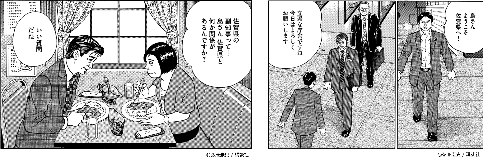島耕作氏が佐賀県の副知事に就職することとなった経緯や想い、公務として取り組む佐賀のスポーツビジネスについて「島耕作シリーズ」の世界観でお楽しみいただけます。