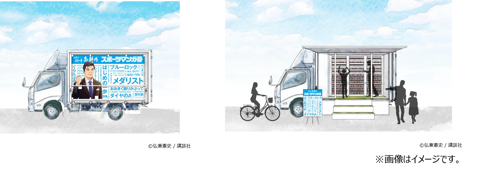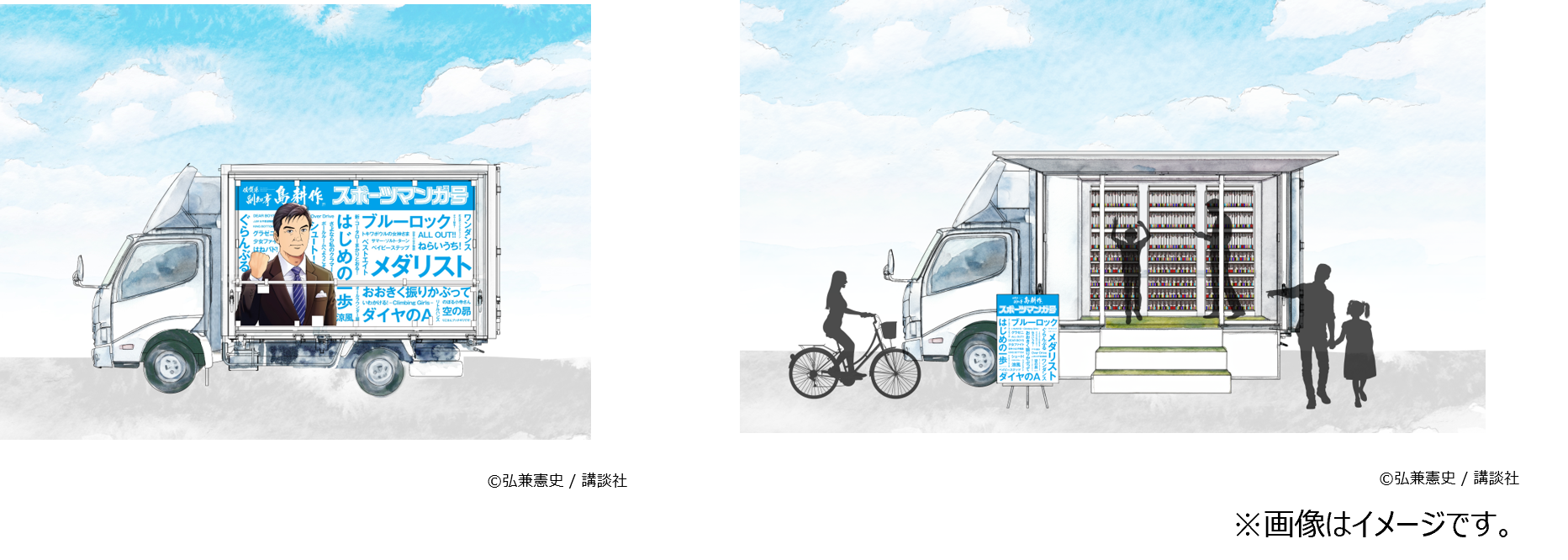 マンガを通じてスポーツに興味を持ってもらい、スポーツ文化の裾野を広げるため、講談社の人気スポーツマンガ30タイトル以上と「島耕作シリーズ」、約750冊を集めた「スポーツマンガ号」が東京都内と佐賀県内を走行します。展示期間中は、様々なスポーツマンガを無料で読むことができ、マンガを通じてスポーツの楽しさに触れていただくことができます。