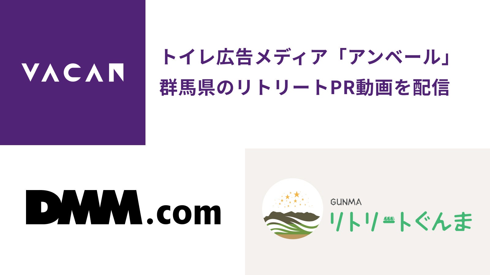 AIとIoTを活用してムダな「待つ」をなくすサービスを提供するスタートアップ、株式会社バカン(本社:東京都千代田区、代表取締役:河野剛進、以下「バカン」)は、合同会社DMM.com(本社:東京都港区、会長兼CEO:亀山敬司、以下「DMM」)地方創生事業において、群馬県のリトリートPR動画をトイレ広告メディア「アンベール」で配信開始したことをお知らせいたします。