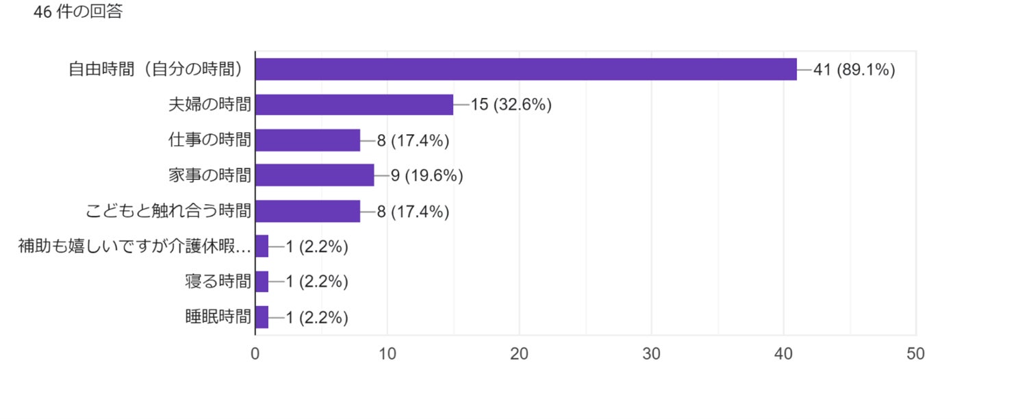 具体的に何の時間がないと感じますか?の問いに89.1%が自由時間がないと感じるの回答でした。