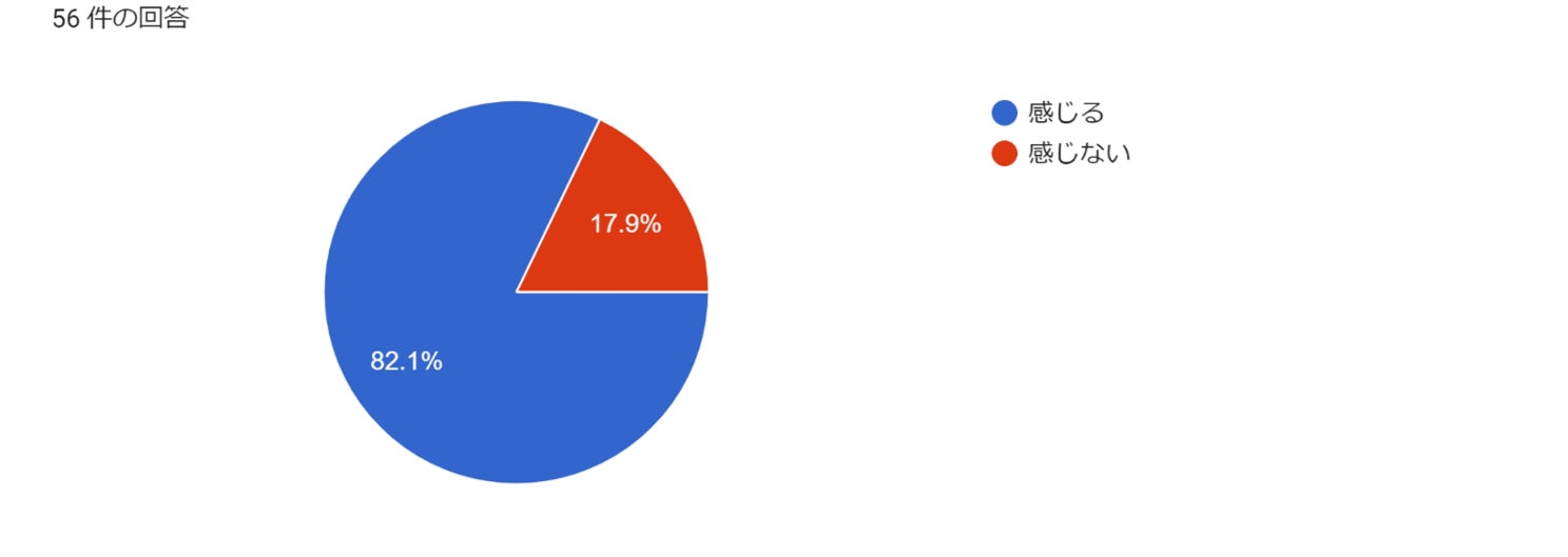実際、自由な時間等がないと感じますか?という問いに、82.1%が時間のなさを感じていると回答、