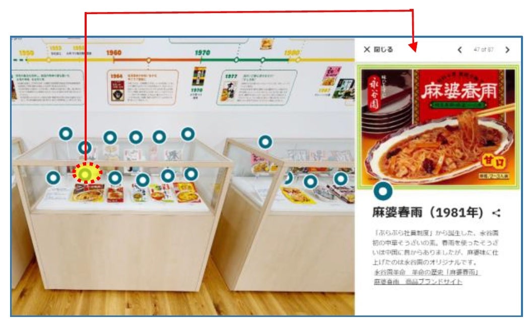 永谷園本社 1 階にある、過去に発売された数々のユニークな商品や貴重な写真など70年間の歴史を展示している「永谷園展示室 資料館 」をウェブ上で見学することができ、まるで現地を訪問したかのような感覚でご覧いただけます。