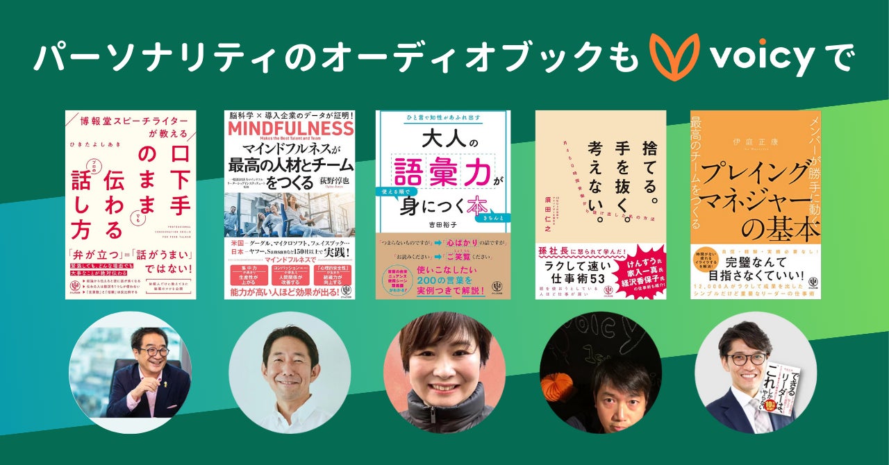 Voicyで音声配信をされているパーソナリティの方々のオーディオブックも多数、Voicy内で聴けるようになりました。日々の放送の中では、書籍を出版されたあとの著者の方々の今の思いを聴くこともできます。ぜひ合わせてお楽しみください。