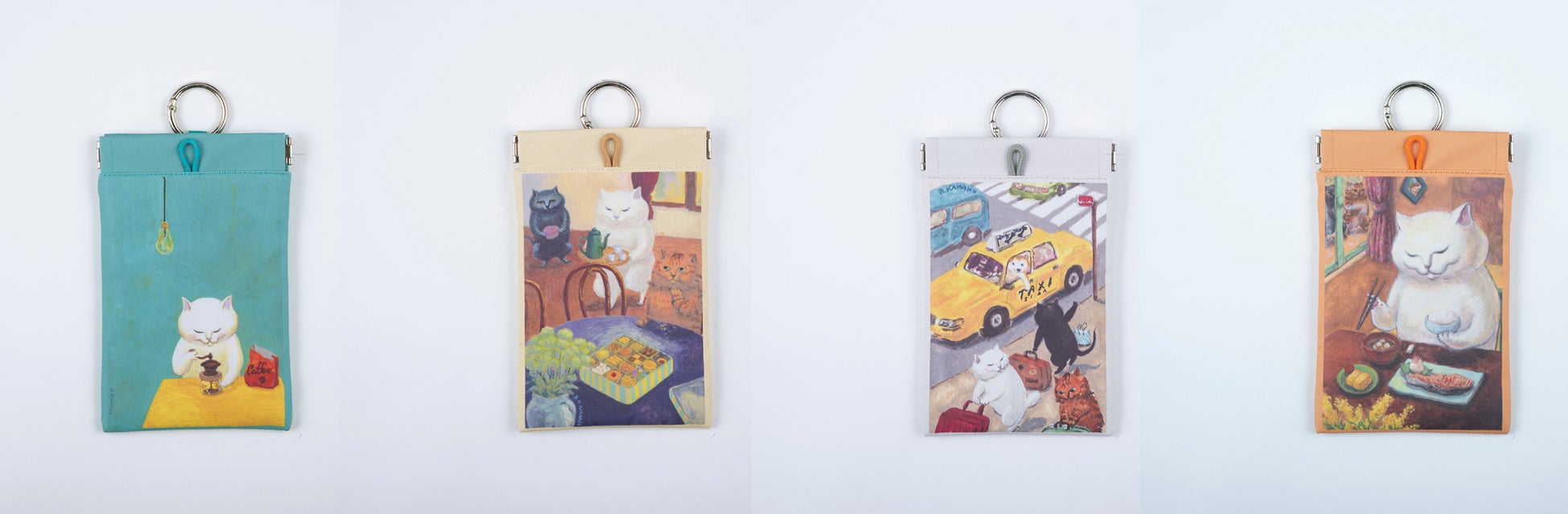 白猫のチャオをメインに動物たちがたくさん登場するカマノレイコさんの作品。日常のワンシーンを切り取った一つ一つの作品には、表情豊かでクスッと笑ってしまうような主人公の動物たちや、ふだんの暮らしの中のありふれたものがたくさん描かれています。