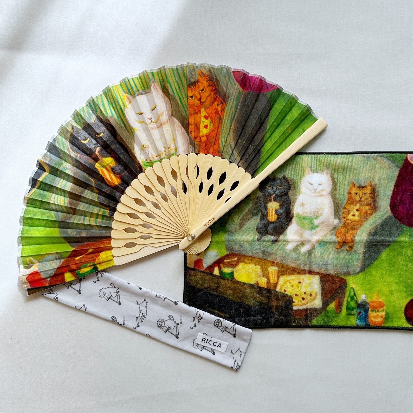 猫や動物の姿をモチーフに、いつもの暮らしを描く画家 カマノレイコ「ねこの暮らし」シリーズの扇子が発売開始