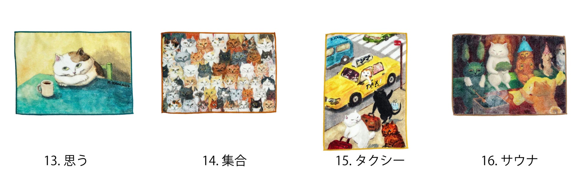 【商品名】「ねこの暮らし」 by カマノレイコ タオルハンカチ(全16種)