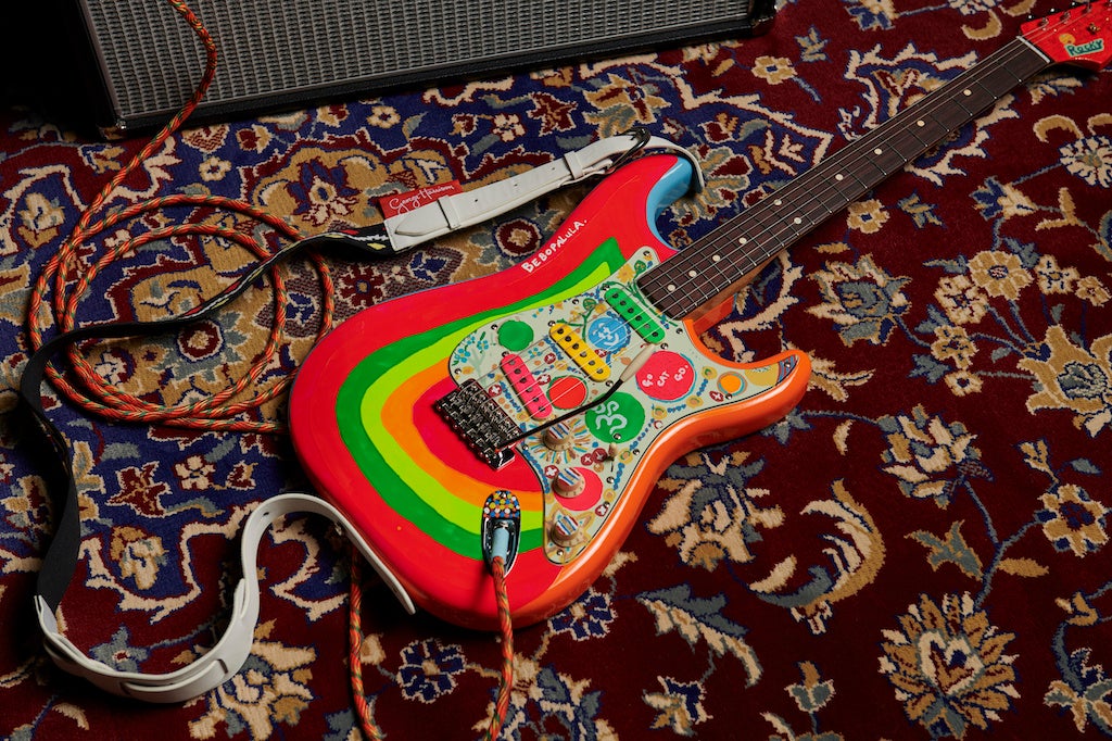 ジョージ・ハリスンは、ビートルズとともに、そして輝かしいソロキャリアを通じて世代を象徴するサウンドを作り上げ、彼の卓越したギターワークは後に続く数え切れないほどのミュージシャンにインスピレーションを与えました。彼はそのキャリアを通じて印象的なギターを多く演奏しましたが、その中でも最も視覚的に特徴的だったのは、このサイケデリックな色合いでハンドペイントされた”Rocky”でした。このコレクションを通じて、ぜひジョージ・ハリスンの世界をお楽しみください。