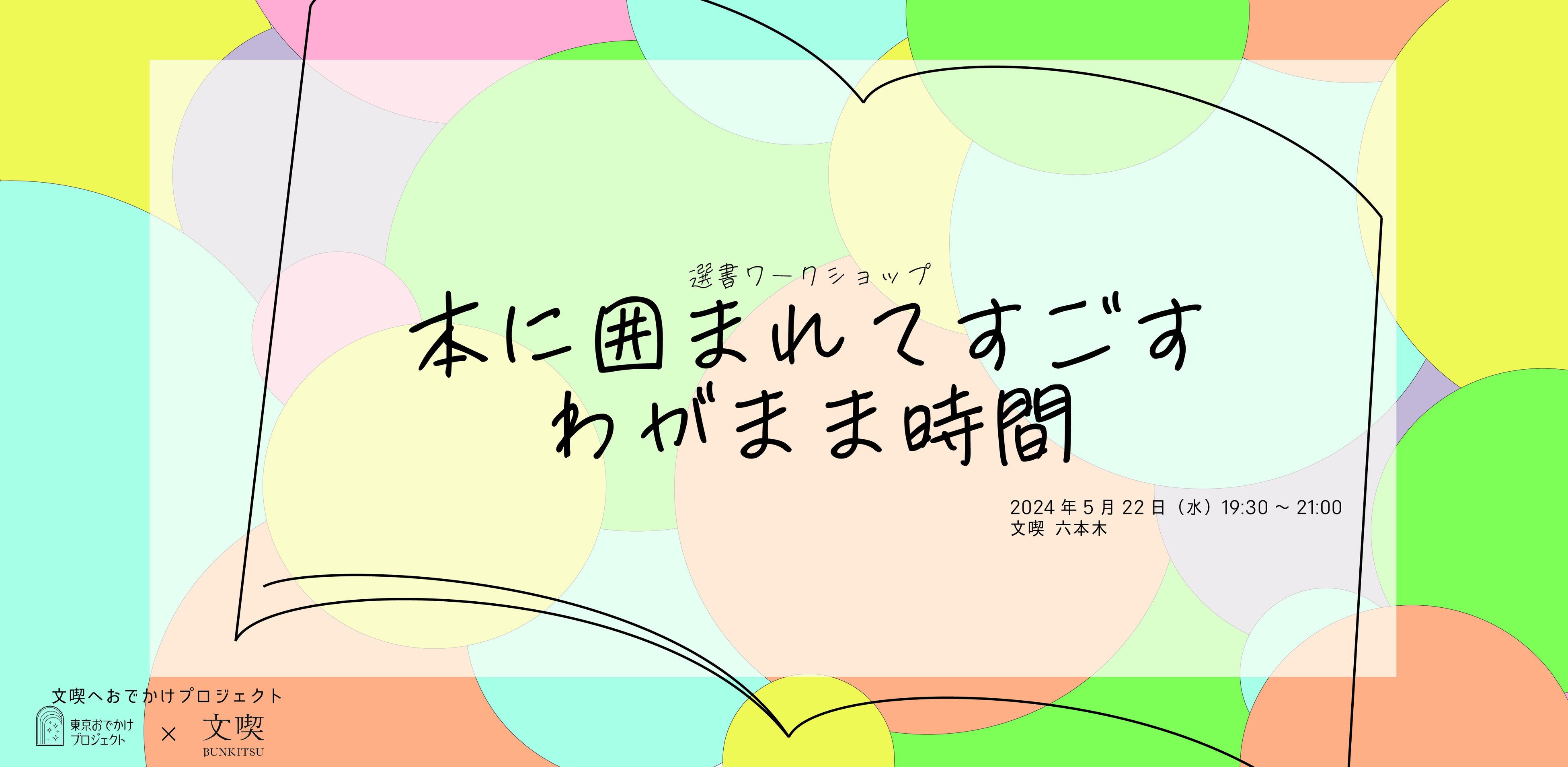 第1回目は、2024年5月22日(水)に、選書ワークショップ「文喫へおでかけプロジェクト~本に囲まれてすごすわがまま時間~」を「文喫 六本木」で開催いたします。