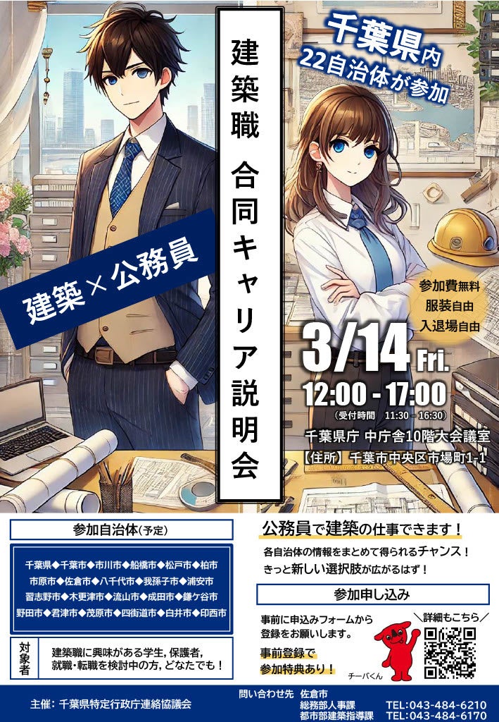 【千葉県佐倉市】千葉県・市22自治体【建築職】合同キャリア説明会を開催します!(3/14)