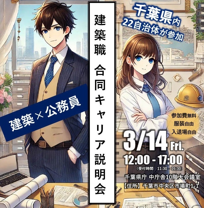 公務員の建築職を希望する方々を対象に、千葉県と県内の22自治体が千葉県初となる「合同キャリア説明会」を開催します。