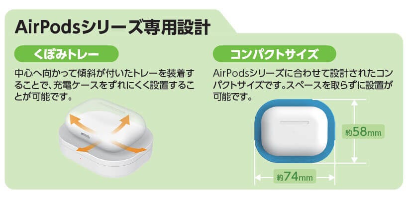AirPods専用のくぼみトレー付き!置くだけで充電できる、コンパクトな卓上ワイヤレス充電器を新発売