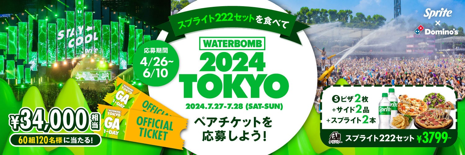 話題の韓国発音楽フェス「WATERBOMB 2024 TOKYO」ペアチケットが抽選で120名様に当たるキャンペーン同時開催!アツアツのピザとクールな「スプライト」を一緒に楽しんでチケットを当てよう!