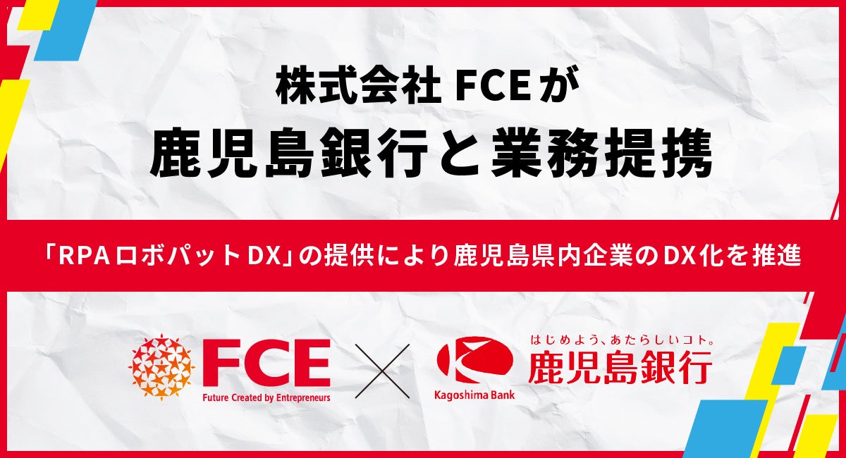 株式会社FCE(本社:東京都新宿区、代表取締役社長:石川淳悦、証券コード:9564)は、九州フィナンシャルグループの鹿児島銀行(本店:鹿児島県鹿児島市、取締役頭取:郡山明久)と業務提携しました。本提携により、鹿児島県内企業の業務効率化を支援するため、【最強ITツール】約7,300製品中第1位(※1)に選ばれた「RPAロボパットDX」の提供を開始します。