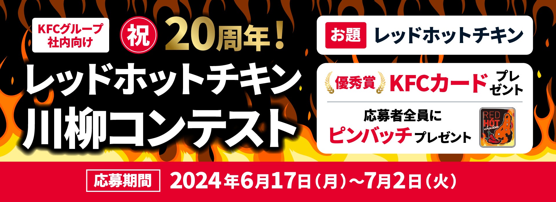 日本ケンタッキー・フライド・チキン株式会社は、「レッドホットチキン」発売20周年を記念して、KFCグループ内の全従業員を対象とした「祝20周年!レッドホットチキン川柳コンテスト」を開催し、受賞5作品を決定いたしました。