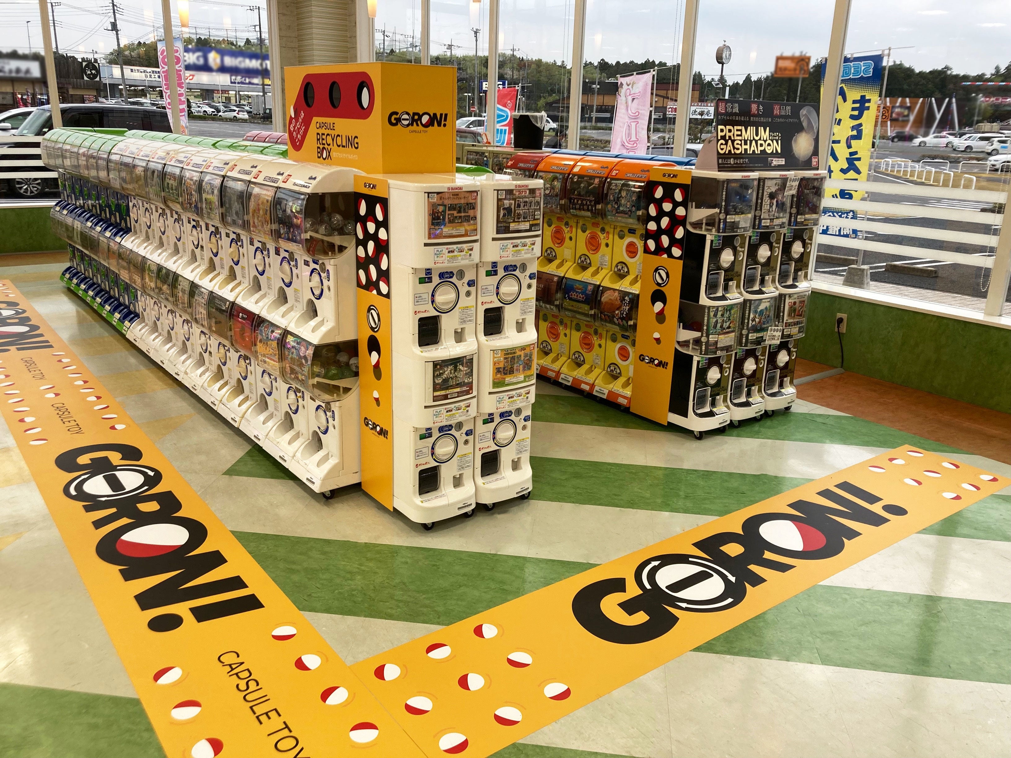 9号店となる『GORON! セガ石岡』 は、カプセルトイ自販機を173面ご用意し、茨城県石岡市のゲーム、アニメキャラクターファンに応えるべく、定番の人気のキャラクター商品はもちろんユニークな商品まで、豊富なラインアップを取りそろえ、「お気に入りを探す楽しみ」「知らないものに出会う体験」を提供してまいります。