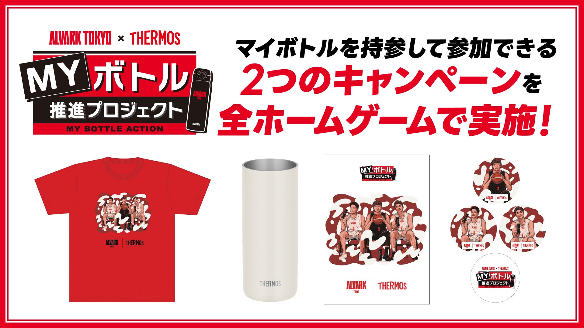 SDGsパートナーであるサーモス株式会社とともに実施しているプロジェクト。ホームゲーム会場でのプラスチック(ペットボトル)ごみ削減に向けて、マイボトル利用を呼びかけています。4シーズン目となる今シーズンは、マイボトルを持参すると参加できる、限定オリジナルグッズが当たるキャンペーンや、ドリンク購入時に「マイボトル割」を受けられる取り組みを実施中です。