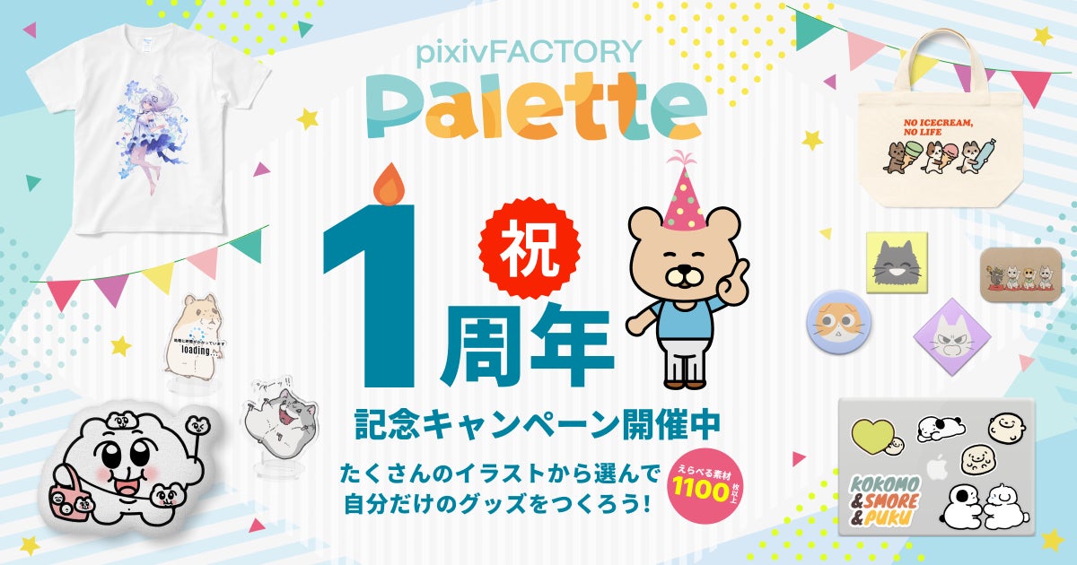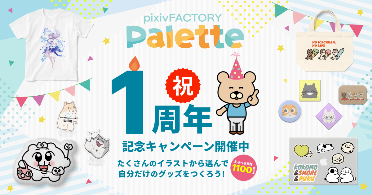 大人気のクリエイターや作品のイラストを自由に選んでオリジナルグッズをデザインできるサービス「pixivFACTORY Palette」がリリース1周年!