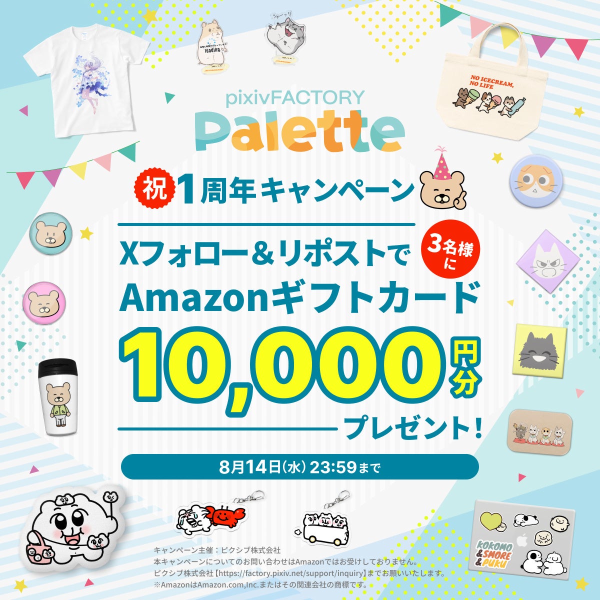 ※ 本キャンペーンはピクシブ株式会社による提供です。本キャンペーンについてのお問い合わせはAmazonではお受けしておりません。お問い合わせの際は、pixivFACTORY事務局(https://factory.pixiv.net/support)までお願いいたします。