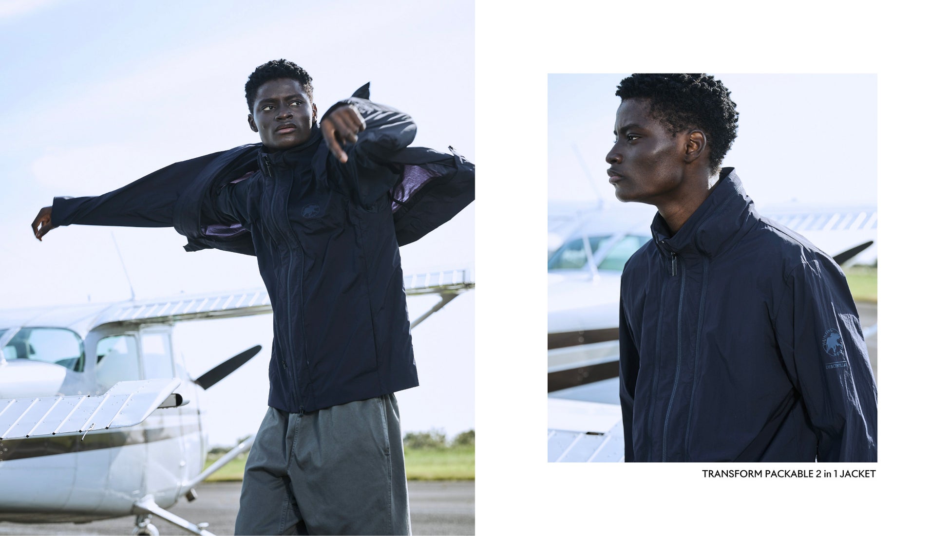 リネンのような風合いを持ちながら防水性・透湿性・防風性等を備えた高機能シェルジャケット、アウターシェルとベストをユニークなジッパーデザインで組み合わせた2in1トランスフォームジャケット、パッカブル機能を装備した軽量ジャケットなどをラインナップ。