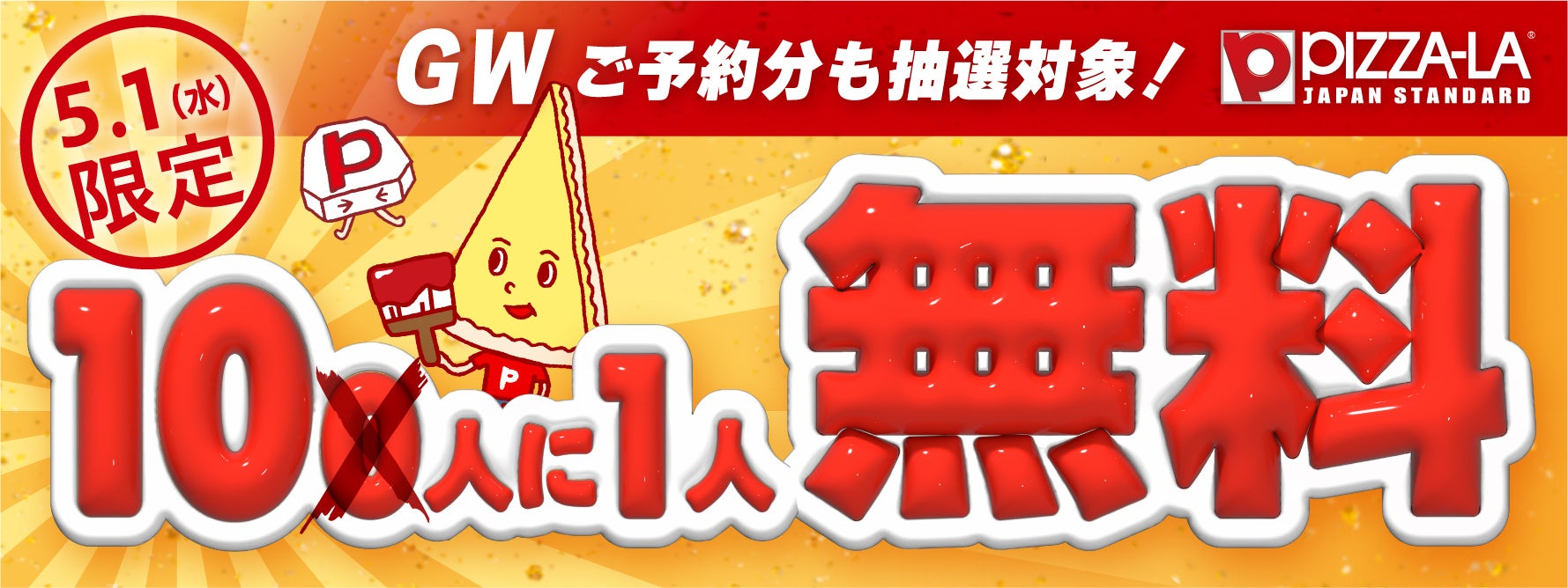 ゴールデンウィークは「10人に1人無料」企画で、ぜひピザーラをお楽しみください!