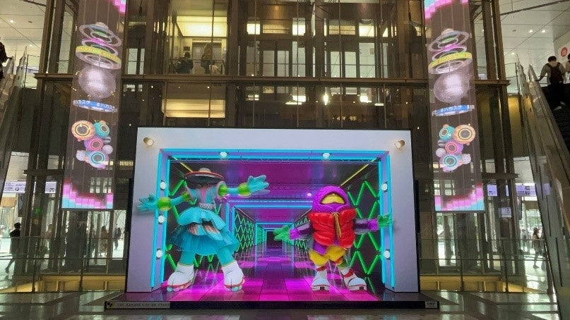L字型のセンタービジョンの特性を活かした、立体映像を毎時30分に放映します。駅をご利用いただくお客さまにもご参加いただけるコンテンツとなっております。