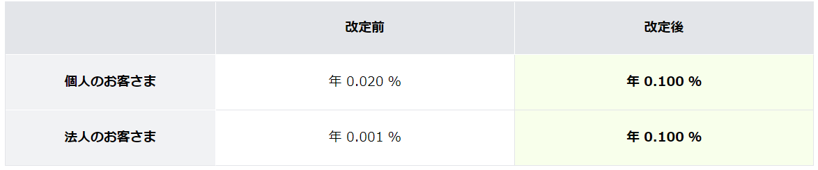 円定期預金金利につきましても改定をおこなう予定です。改定後の金利および改定日が決まり次第、当社WEBサイトにてお知らせします。