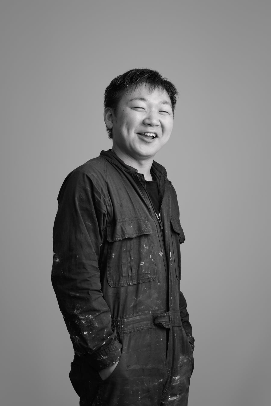 1987年生まれ 三重県在住 2009年から『やまなみ工房』に在籍 音楽が流れるとリズムに 合わせエアギターをかき鳴らし熱唱、車両が後退する際はオーバーアクションで誘導、休憩 時には煙草を吸う仕草を真似て一服と、常に周囲を意識し自分自身を演出している彼の自己 アピールの一つに作品制作がある。モチーフは人物や動物等、様々で雑誌や画集を見てそれ を模写する。腕を組み、角度を変え構図を考える様も、一つ一つ丁寧に色を塗り重ねる筆使 いもすべては彼の演出、彼の美学なのである。その美学から生まれる作品たちは、彼も予想 がつかない全く別の色や形へと変化していく。 また、2024年開業した愛知県名古屋市の日本最大級のオープンイノベーション拠点「STATIO N Ai」に全長40メートル越えの作品を展示。