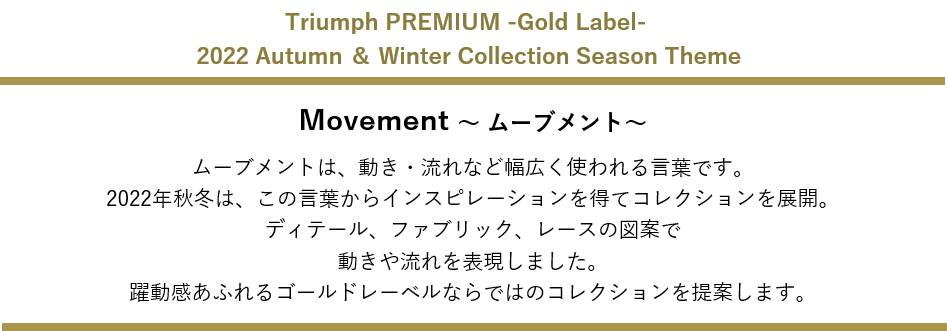 女性たちのありのままに寄り添うメッセージ「It’s Personal 〜きれいごとより、私ごと。〜」を掲げるトリンプ・インターナショナル・ジャパン株式会社(本社:東京都中央区築地5-6-4、代表取締役社長:ヴァンサン・ネリアス)が展開するプレミアムライン『Triumph PREMIUM -Gold Label- (トリンプ プレミアム ゴールドレーベル)』の新作が、9月14日(水)より発売します。