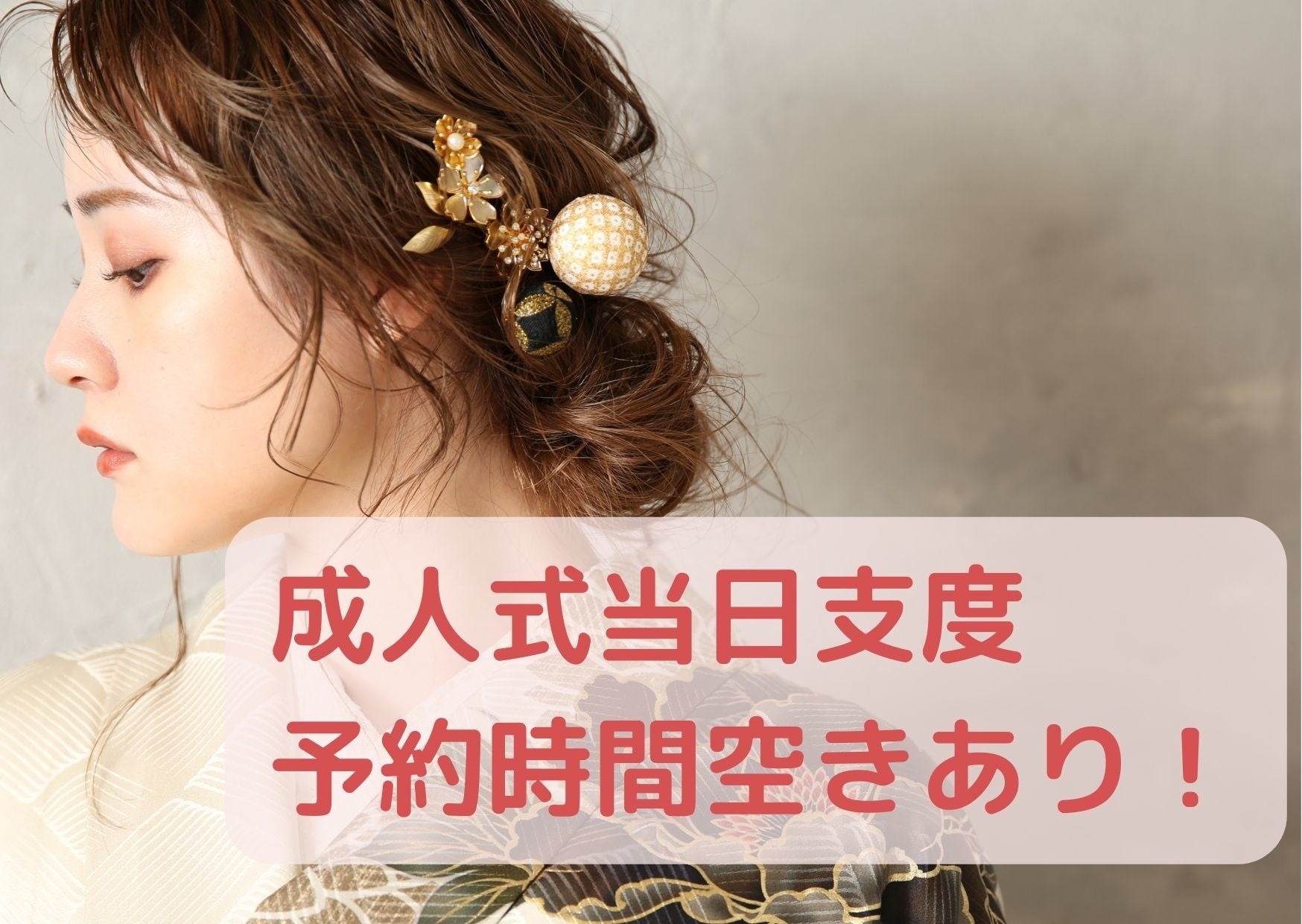 当店ではまだまだ、成人式当日のお支度のご予約が可能。まだお支度場所が決まってないお嬢様などは、この機会にぜひお気軽にご相談くださいませ!