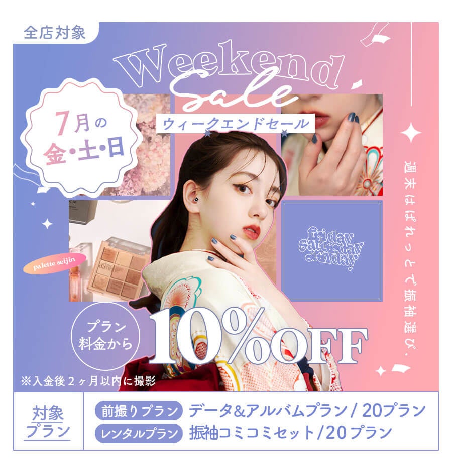 当日レンタルご希望の場合はこの期間にご予約いただくと、特典併用で最大30%オフでのご案内をさせていただきます。おしゃれなだけじゃない、お得な成人記念をお楽しみください。