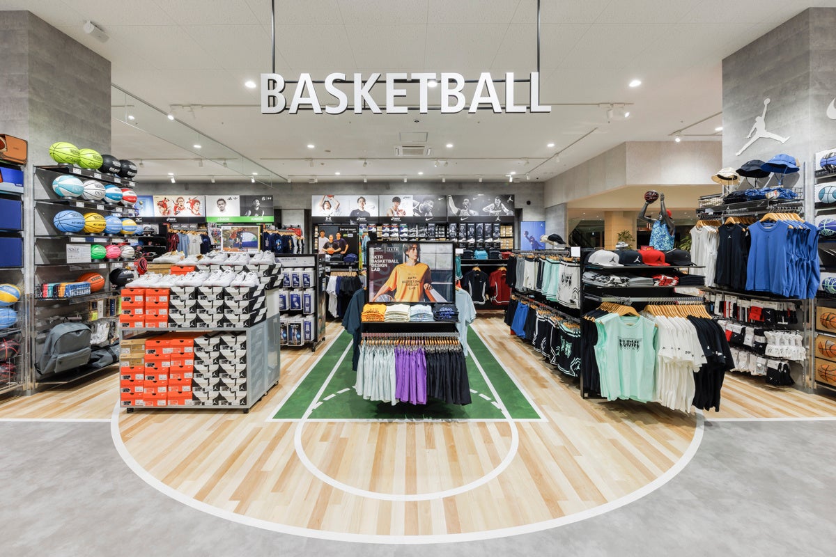 実際に使用するイメージを沸かせる臨場感のある売場に、ナイキやジョーダン、アシックスなど人気ブランドを豊富に展開。シューズは注目度の高いルカやテイタムなどシグネチャーシューズのラインナップが充実。アパレルはファッションを楽しみたい方にお勧めのプライベートブランド ティゴラ×アクターのコラボアイテムなども取り扱っております。