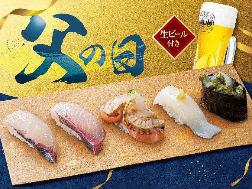 グルメ廻転寿司 にぎりの徳兵衛、海鮮アトム、海へ6/18(日)は“父の日”お父さんいつもありがとう!お寿司とビールで乾杯!「お父さんありがとうセット」販売