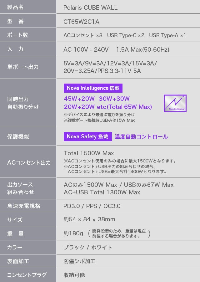 壁コンセントにCポート・Aポートを追加できる拡張電源タップ 『Polaris CUBE WALL』が販売開始!
