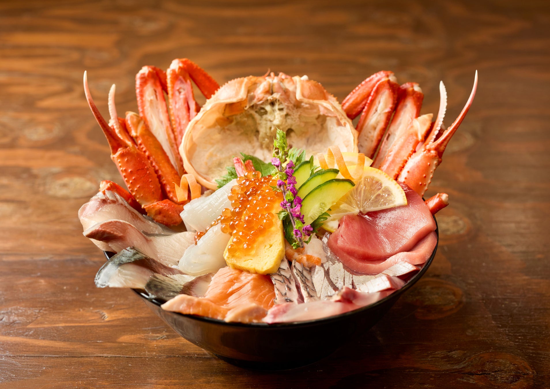 ベニズワイガニが丸ごと一杯のった人気№1の海鮮丼を25周年特別価格で