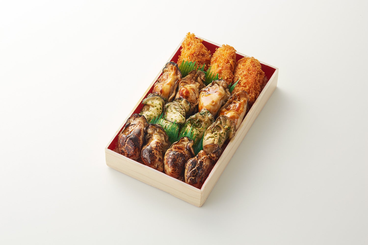 大粒の牡蠣を15個並べた牡蠣尽くし弁当