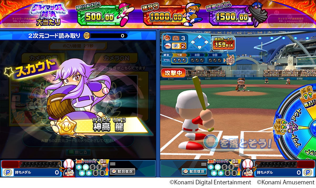 株式会社コナミアミューズメントは、アミューズメント施設向け新作メダルゲーム『パワフルプロ野球 開幕メダルシリーズ!』にて、「パワプロの日」に合わせて、「パワフルプロ野球」シリーズの登場人物「神高 龍(かみたか りゅう)」をスカウトできるカードをアミューズメント施設にて配布するキャンペーンを開催することと、新たな対戦相手と新アイテムをゲーム内に追加することをお知らせします。