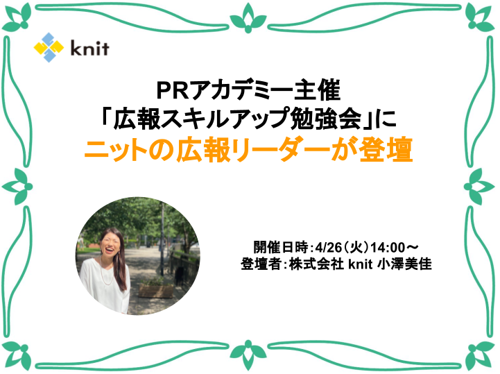 PRアカデミー主催の「広報スキルアップ勉強会」にニットの広報リーダーが登壇〈4/26開催〉