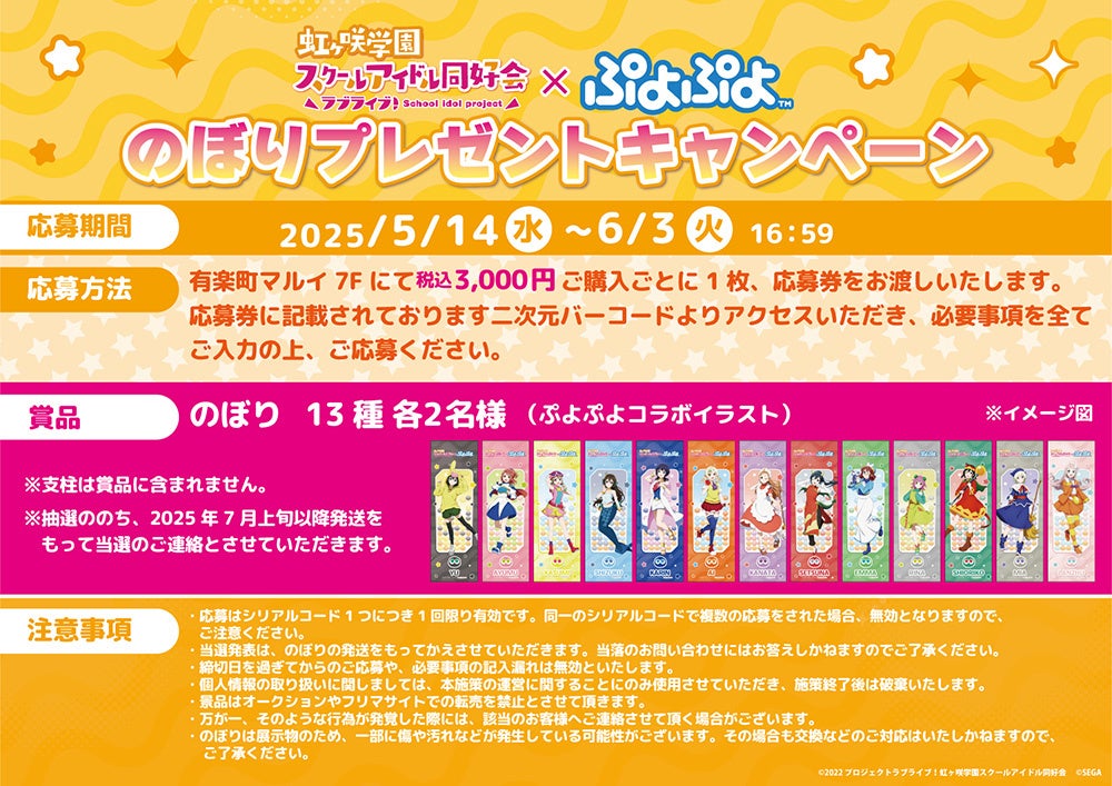 株式会社コンテンツシード(本社:東京都品川区、代表取締役:大塚 則和)は、2025年5月14日(水)より有楽町マルイ 7Fにてラブライブ!虹ヶ咲学園スクールアイドル同好会×ぷよぷよ POP UP SHOPを開催いたします。