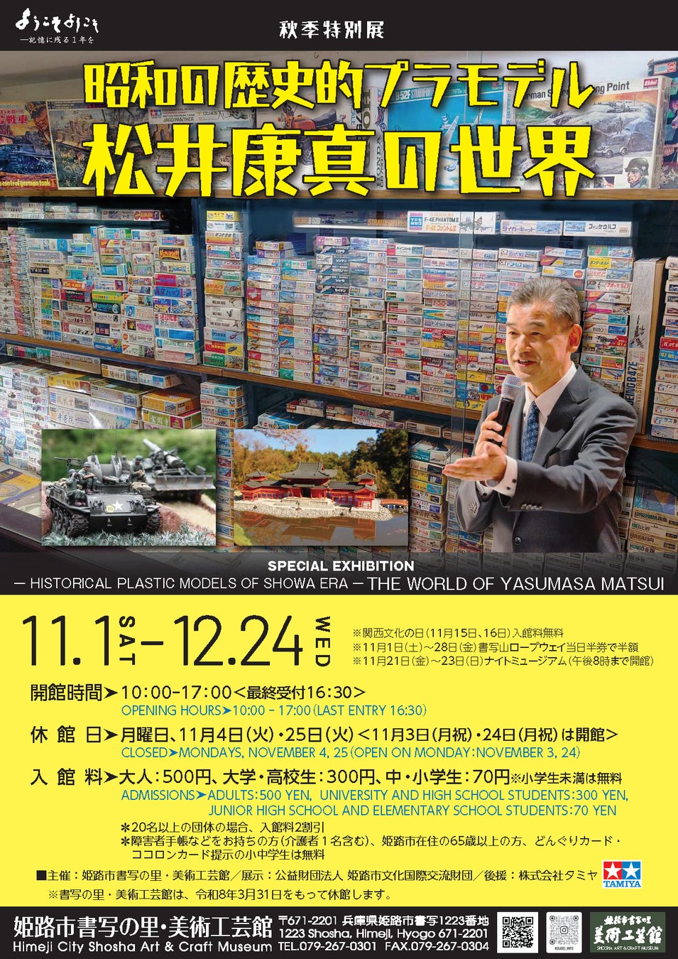 姫路市書写の里・美術工芸館では、令和7年11月1日(土曜日)から12月24日(水曜日)まで秋季特別展「昭和の歴史的プラモデル・松井康真の世界」を開催します。