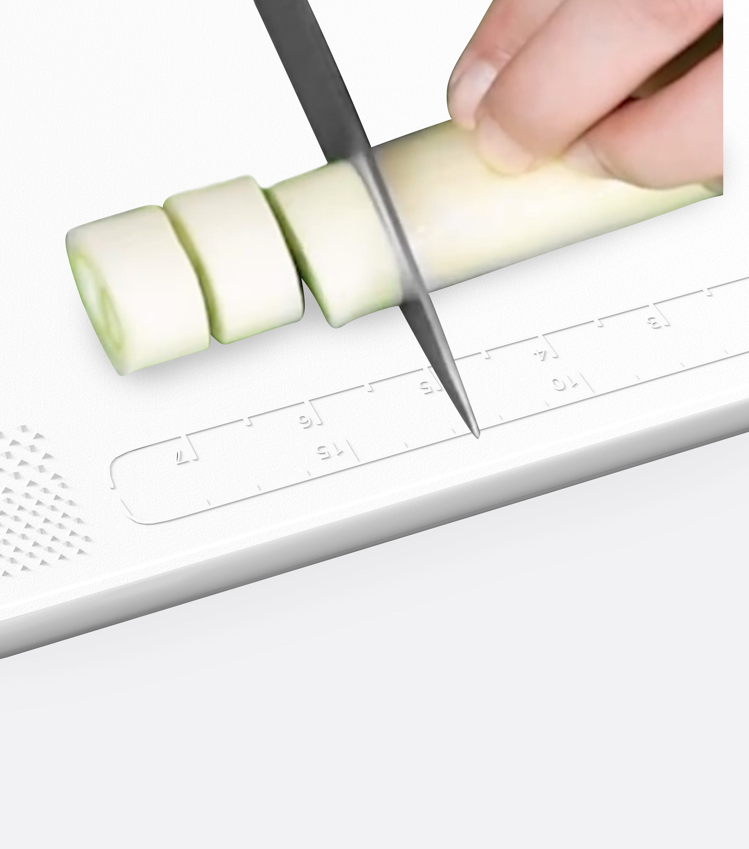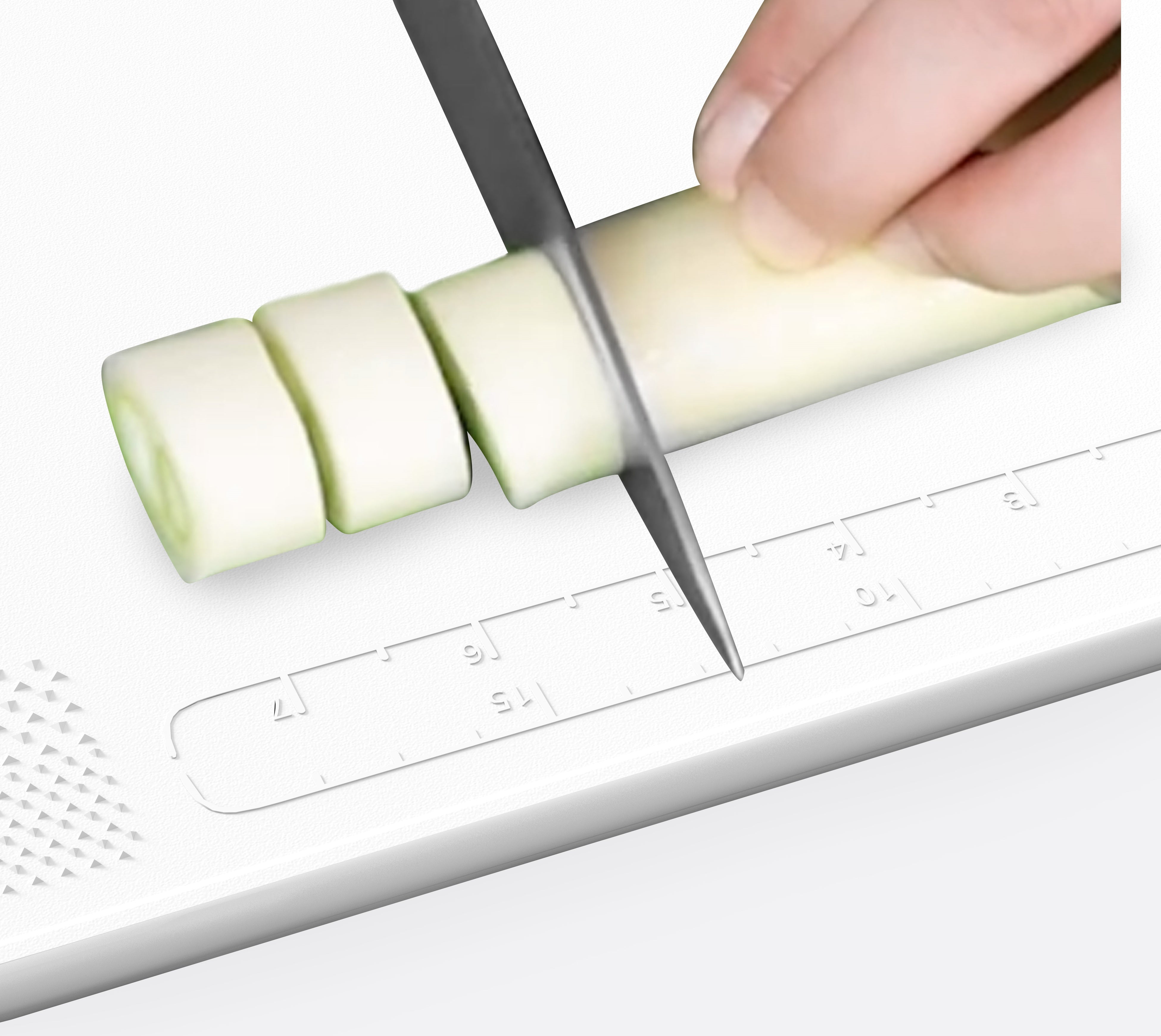 ②食材を均等に切るのに便利な目盛り付き。