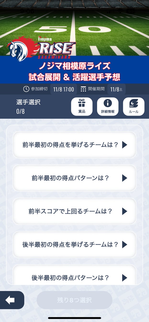 Xリーグ 2025 秋季リーグ 11月8日(土)ノジマ相模原ライズの試合展開&活躍選手予想をスポーツ予想アプリ「なんドラ」で開催!