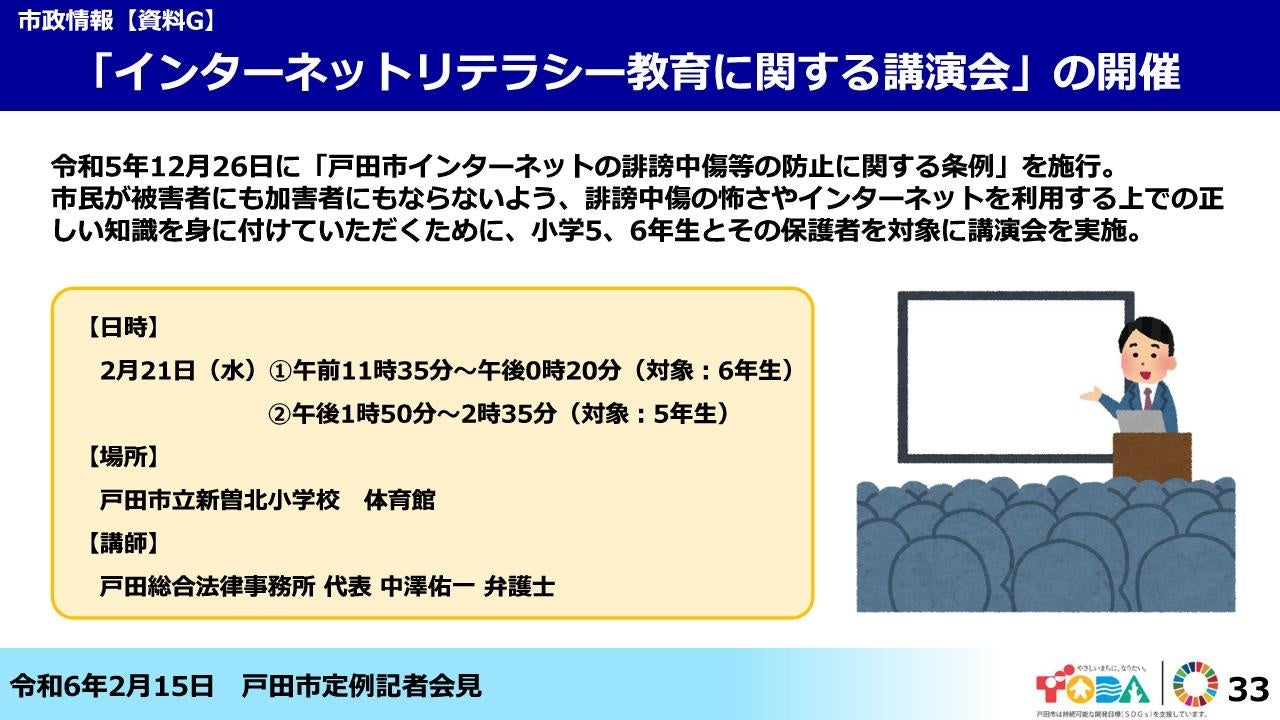 【埼玉県戸田市】「インターネットリテラシー教育に関する講演会」を開催します