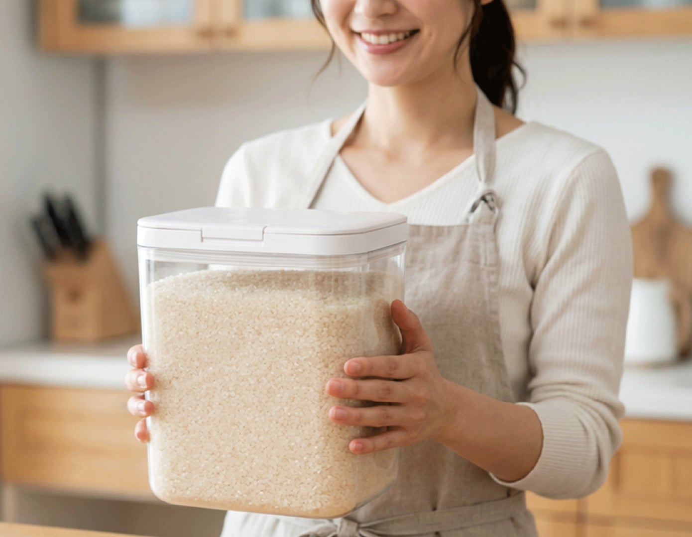 『ワンタッチ開閉 密閉米びつ』は、お米の保存専用に作られました。
