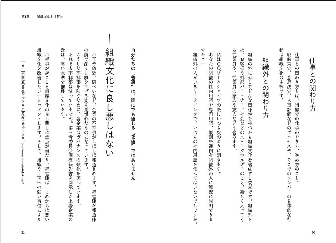 では、いかにCQを使いこなすか――本書では、⽂化と経営の⽗、ヘールト・ホフステードに師事し、カルチャーの専⾨家として多くの組織⽂化変⾰を実現した著者の体験や、組織⽂化変⾰を実現した企業の実例を交えながら、その具体的手法を紹介します。